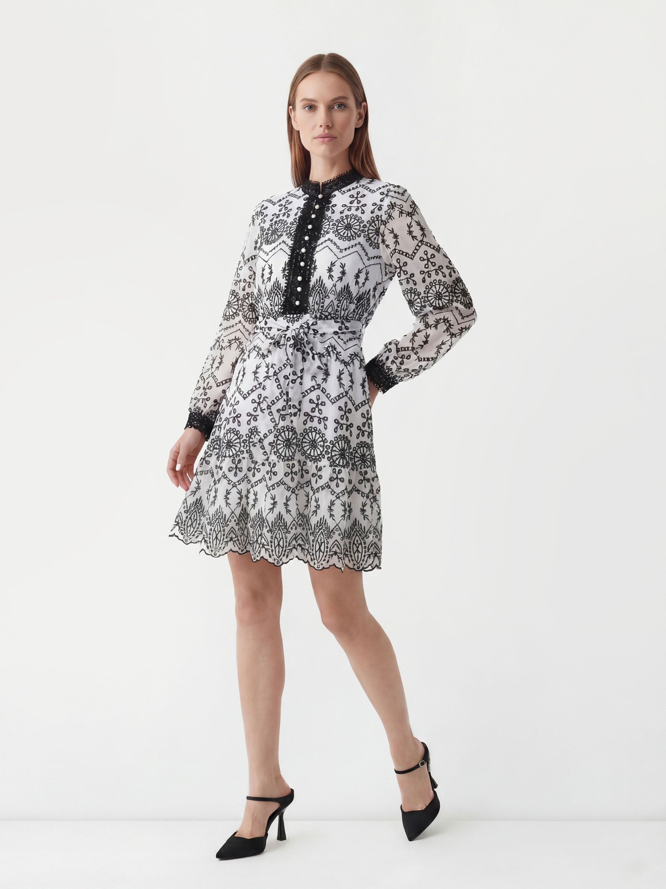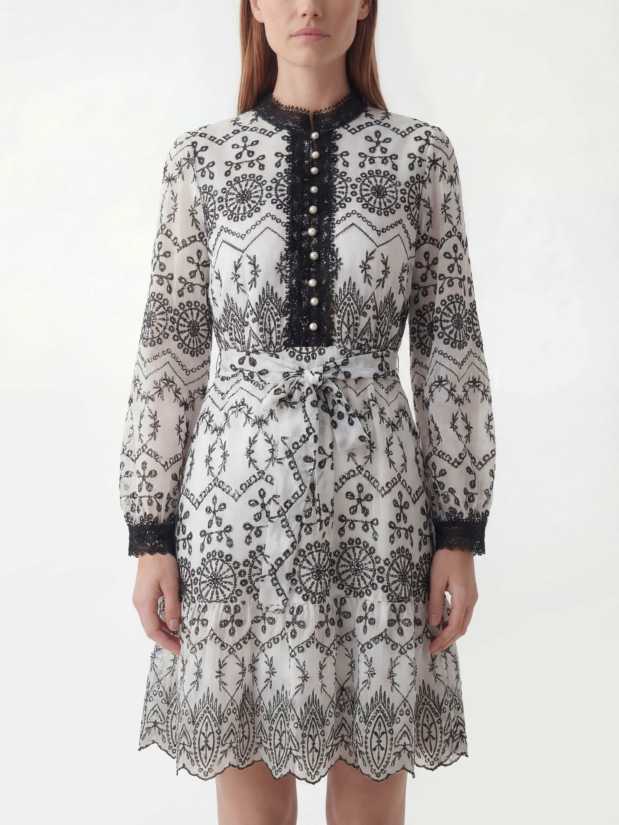 Black and white Schiffli Dress
