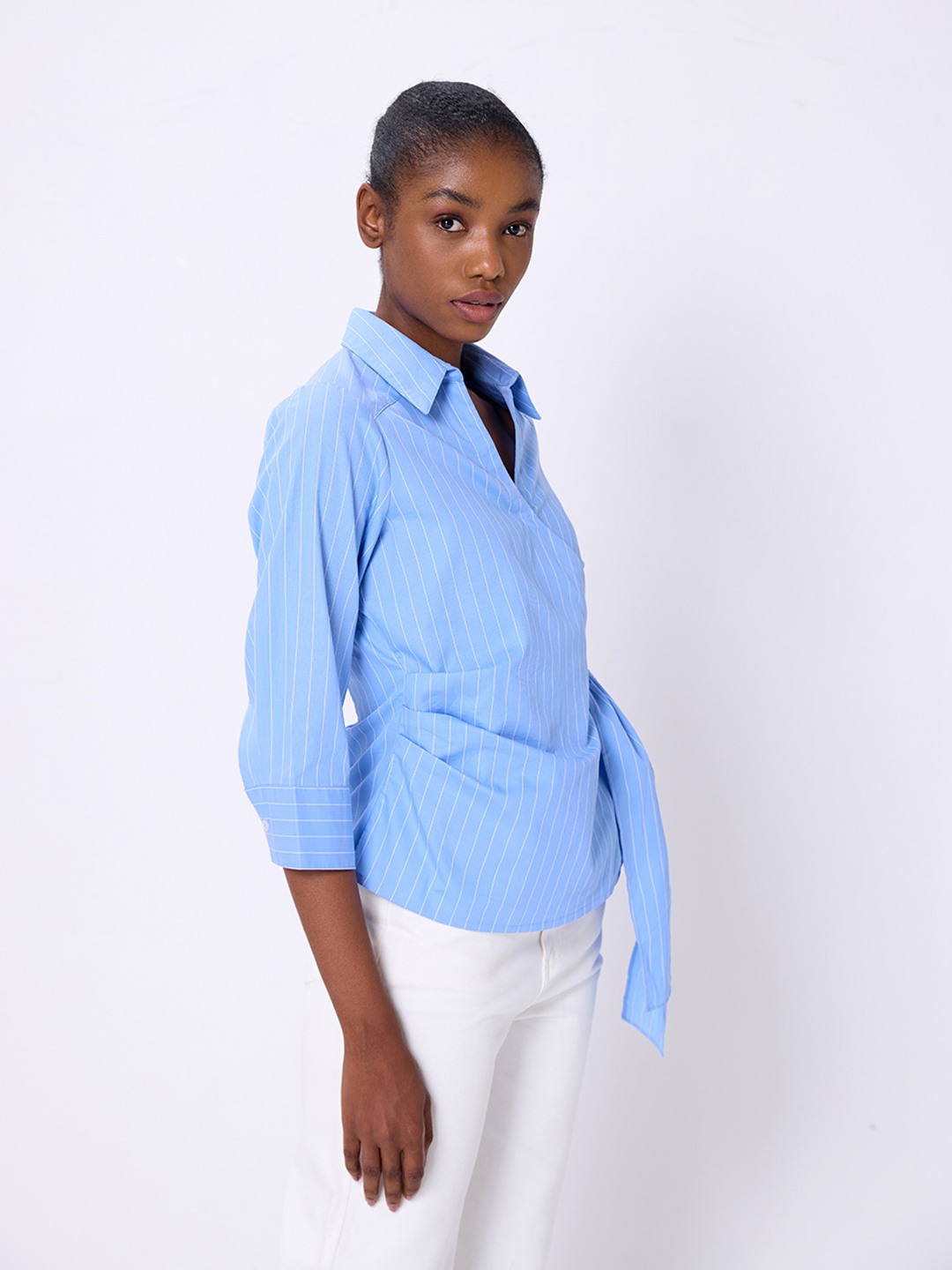 Blue Stripe Wrap Shirt