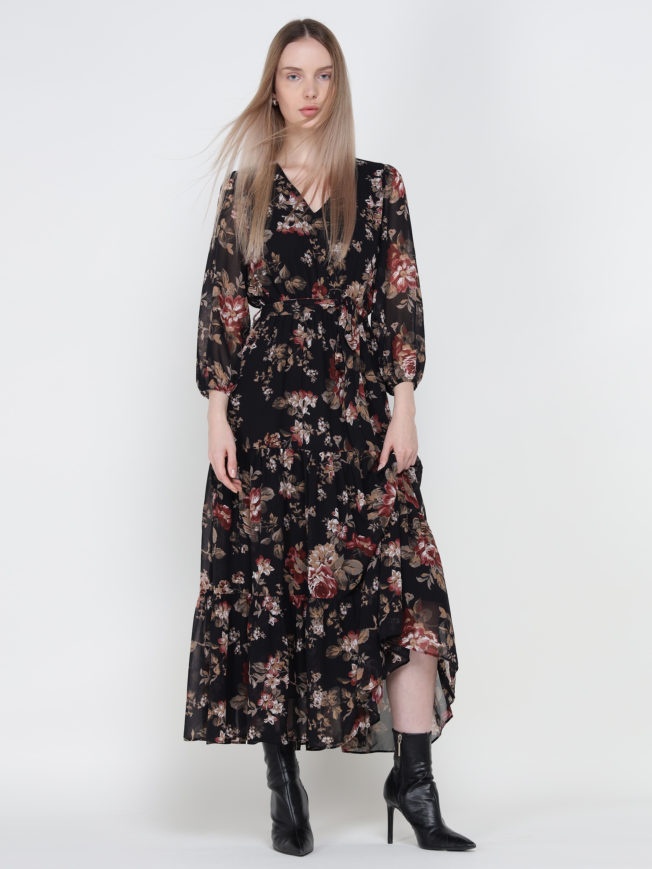 Bohemian Black Floral Dress