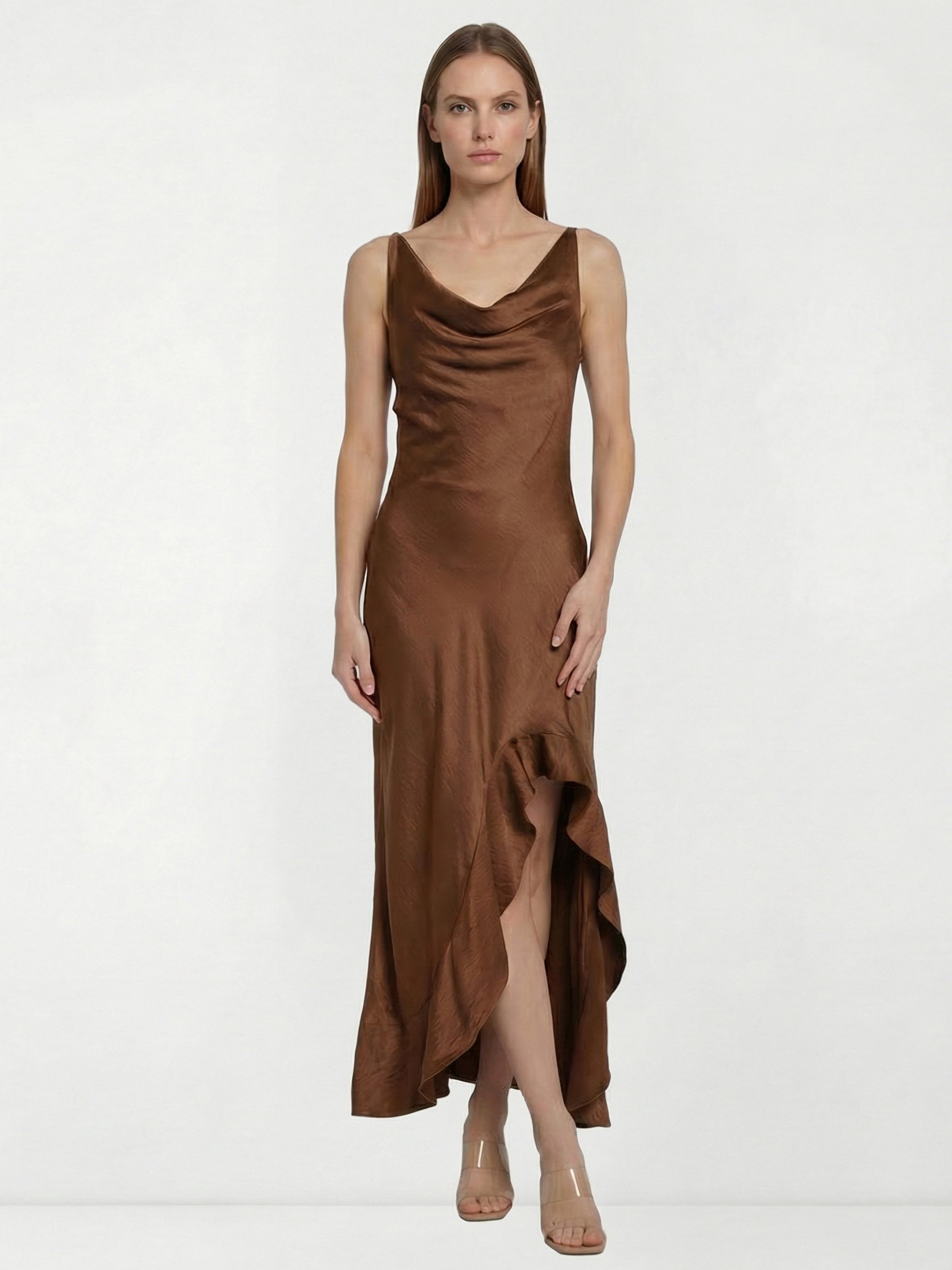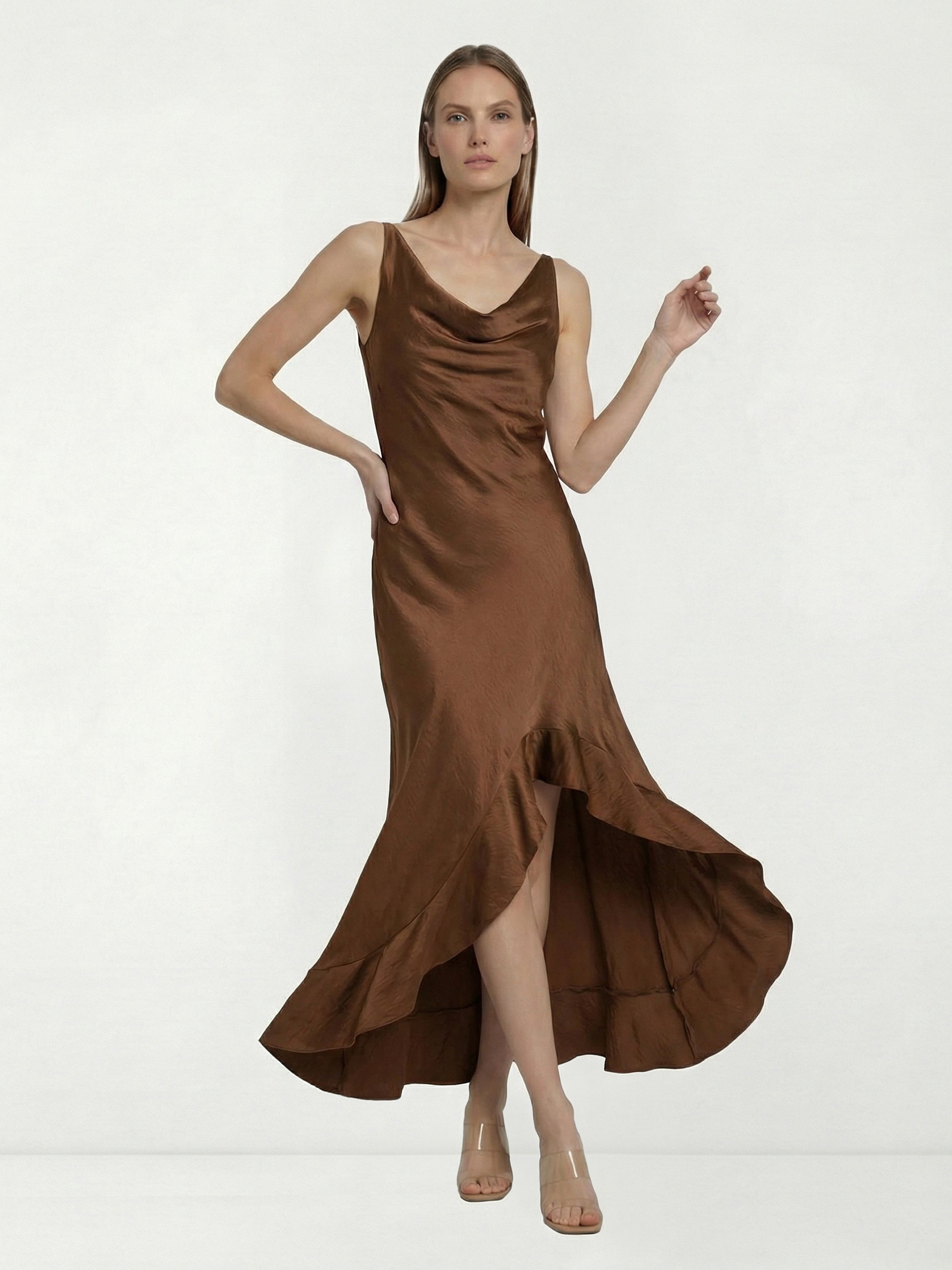 Brown Satin Long Dress