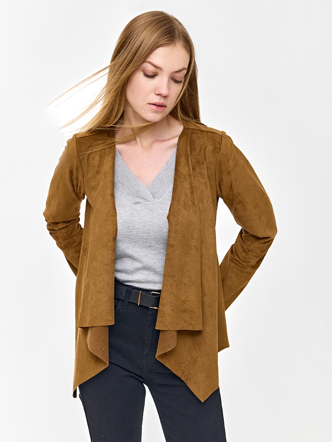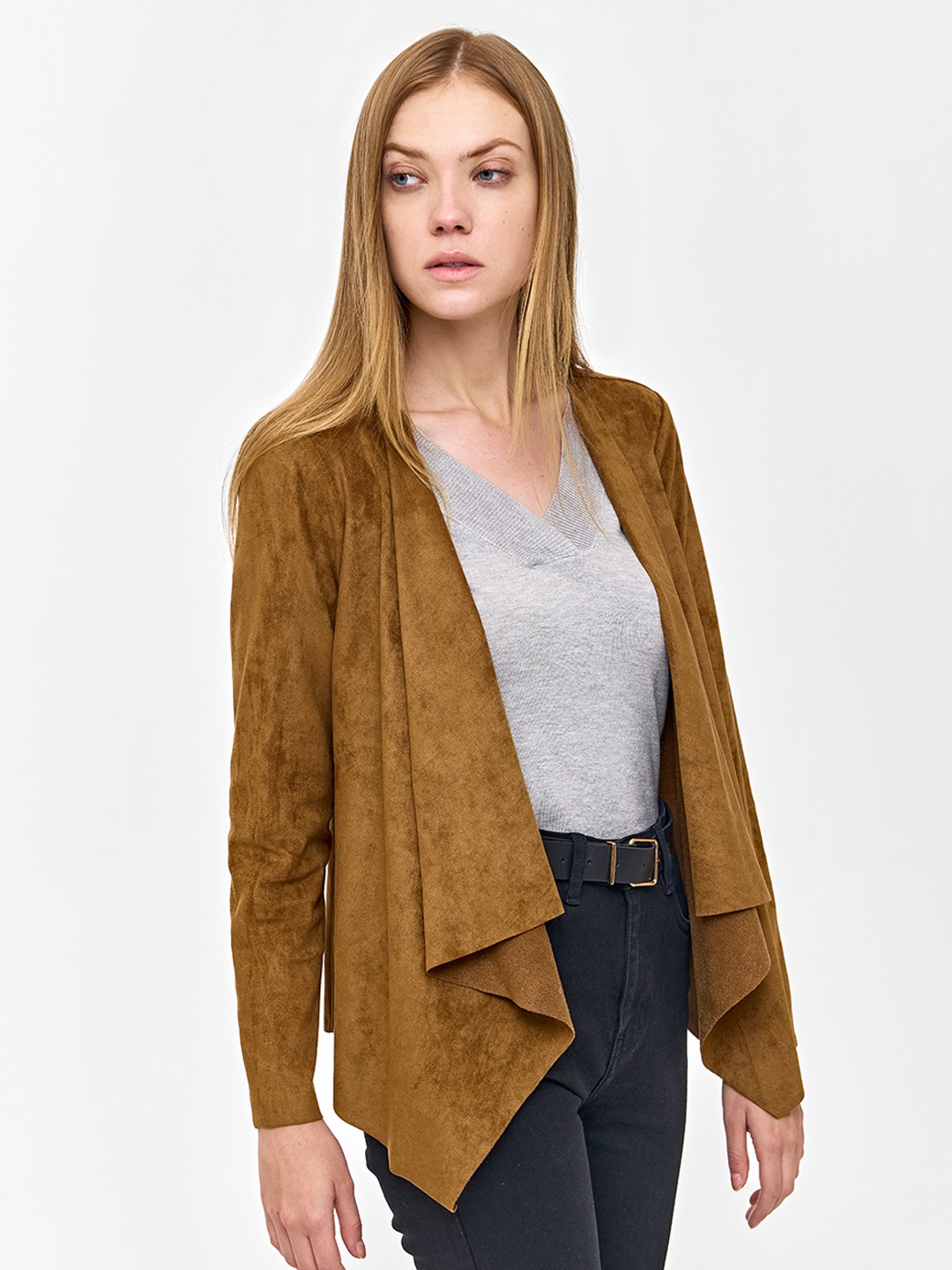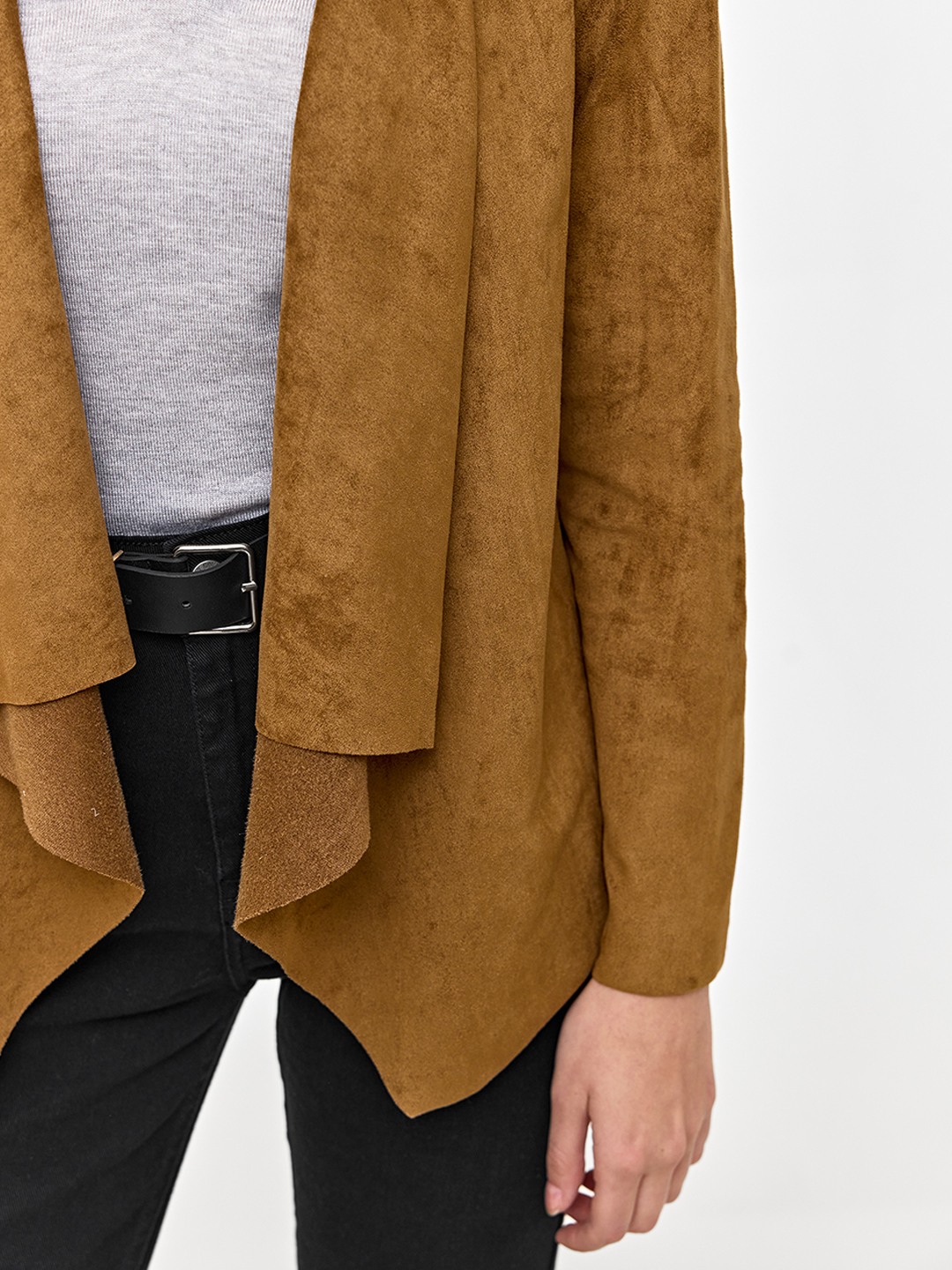 BROWN SHORT SUEDE SHRUG FEATURING LONG SLEEVES