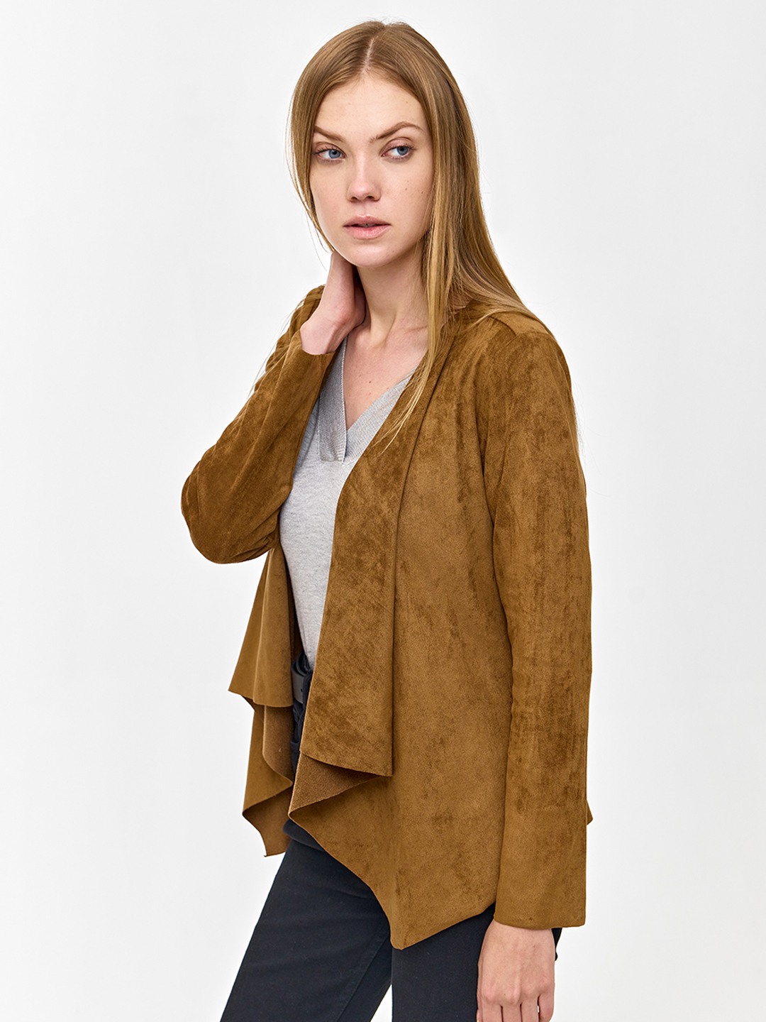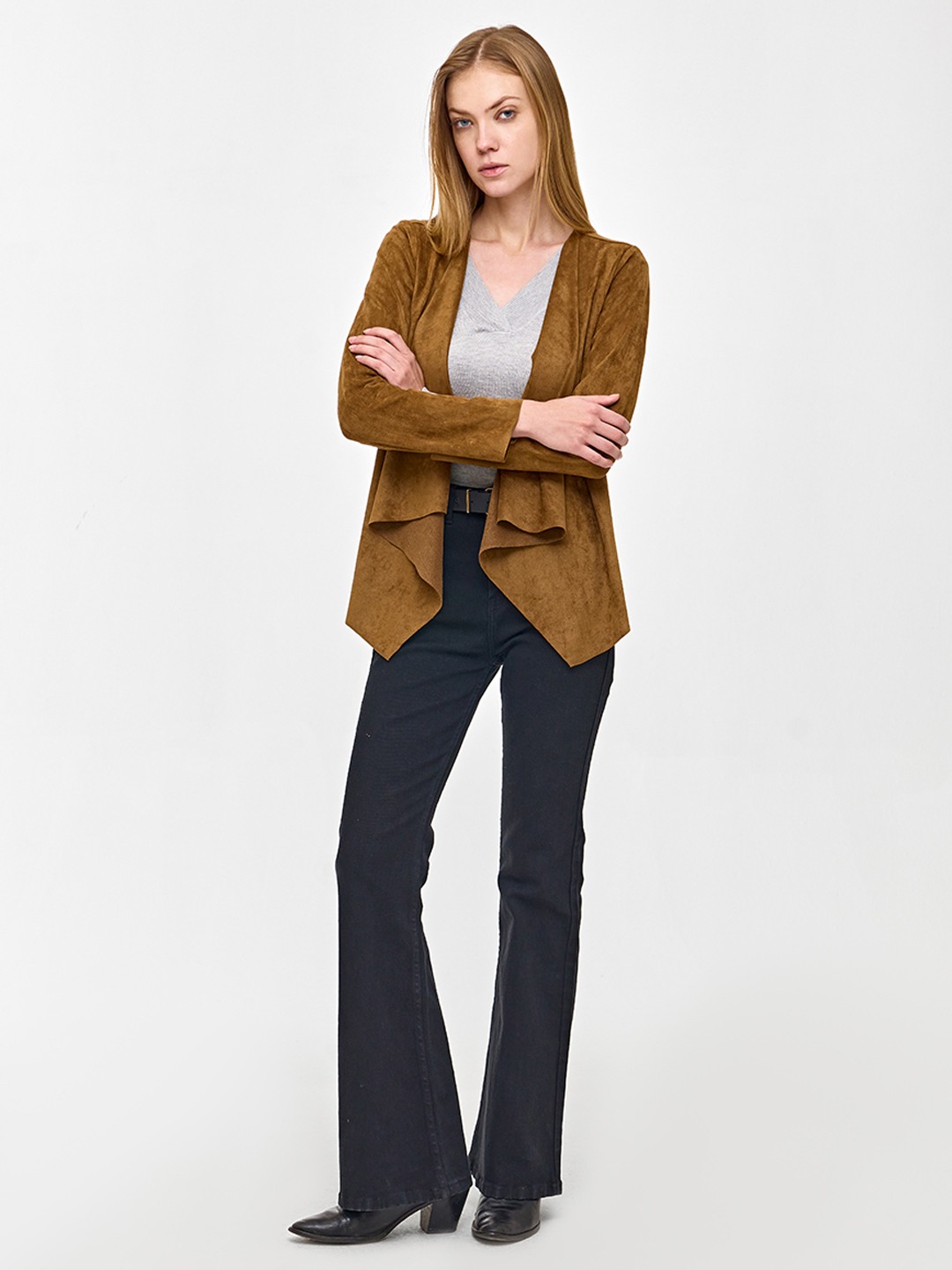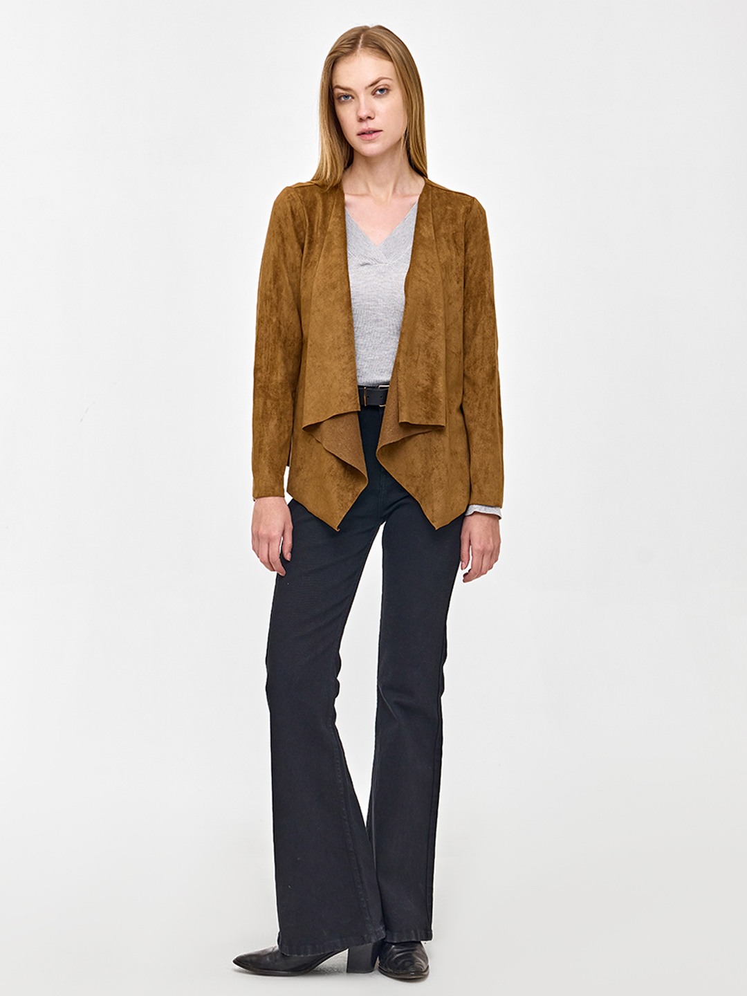 BROWN SHORT SUEDE SHRUG FEATURING LONG SLEEVES