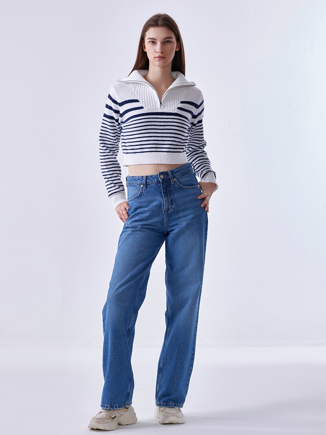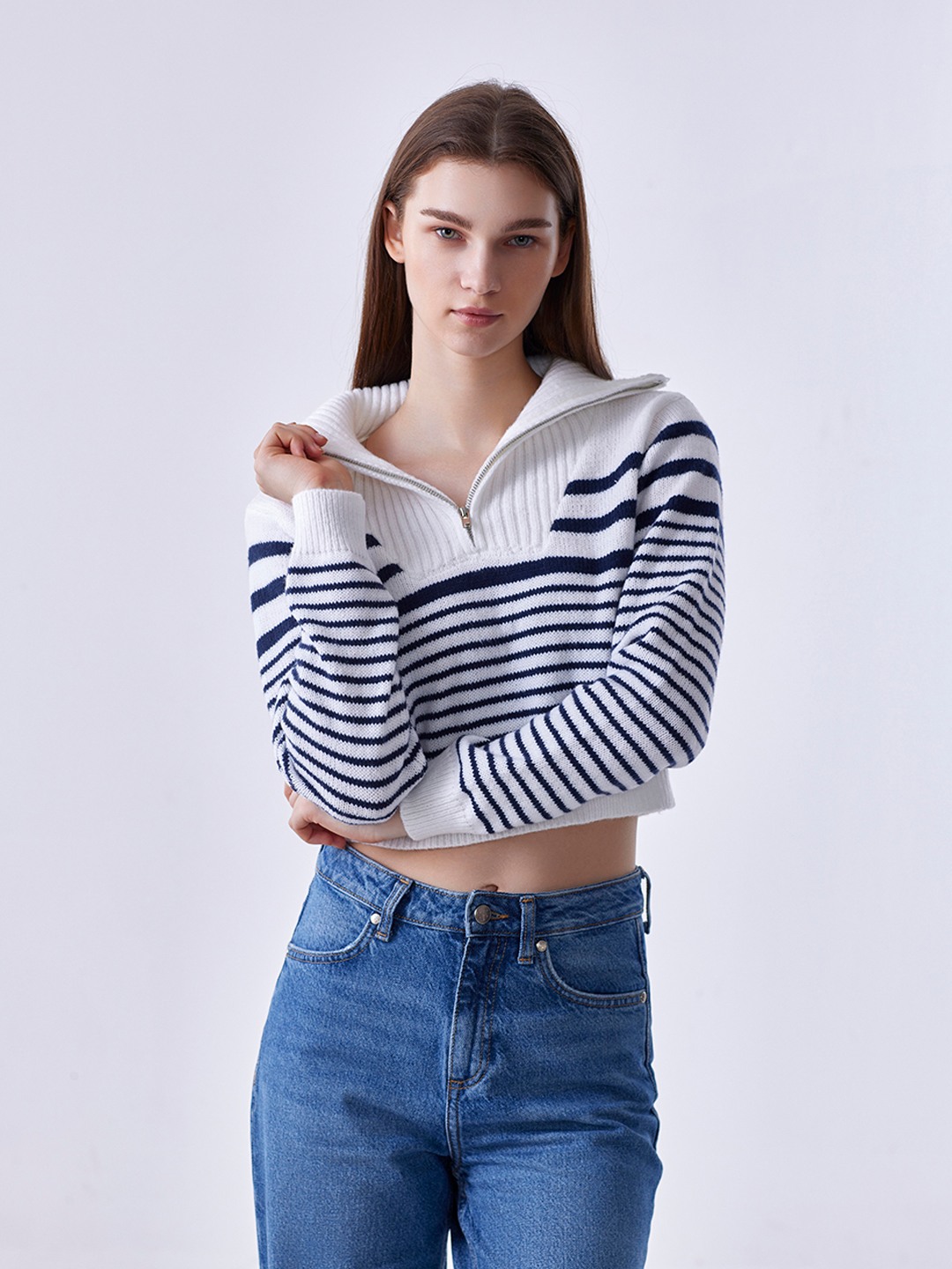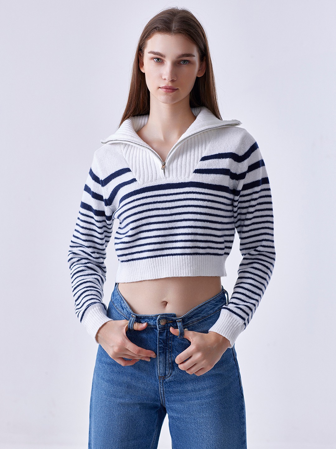 Black/White Striped Collared Pullover