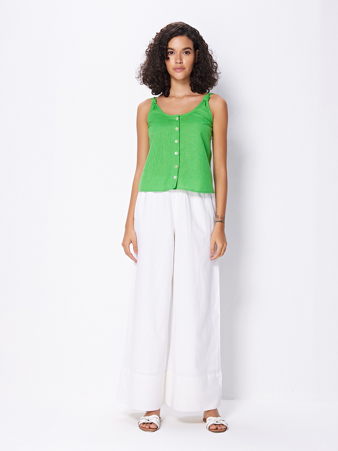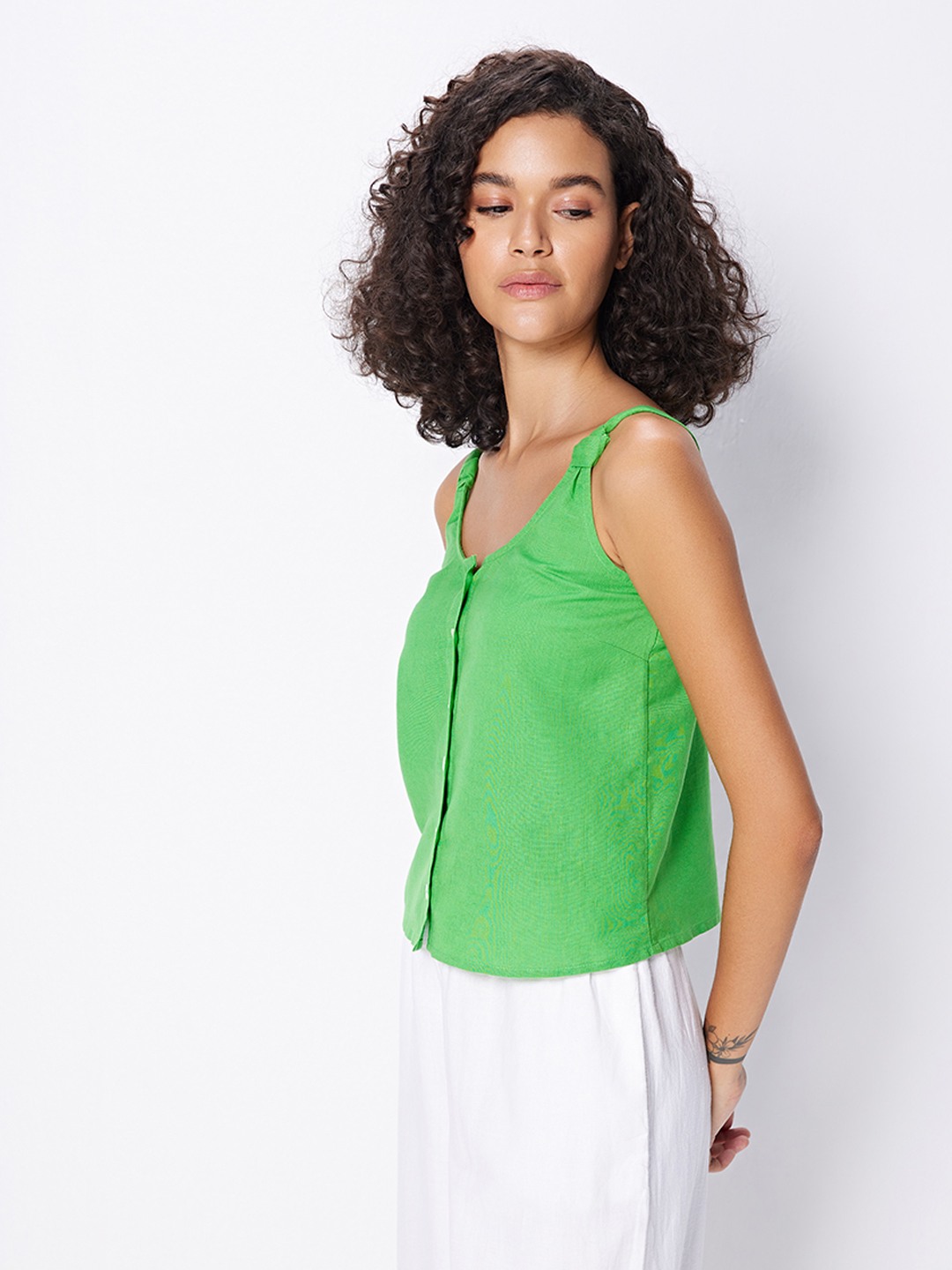 Green button through cami top