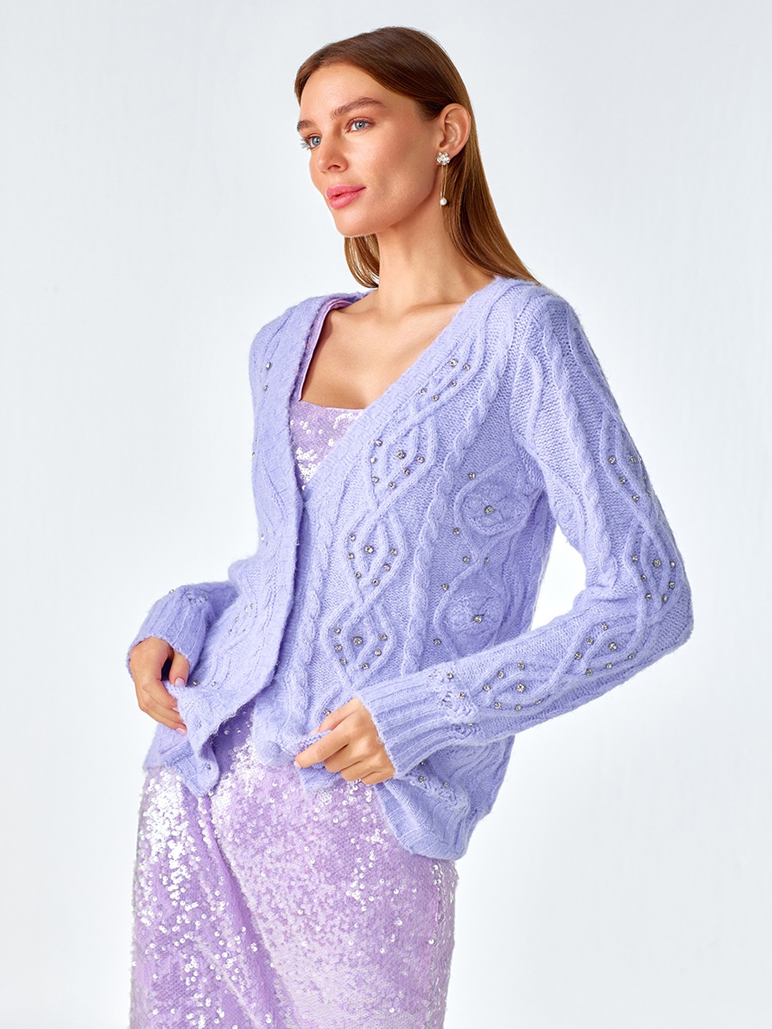 Lavender V Neck Buttoned Cardigan