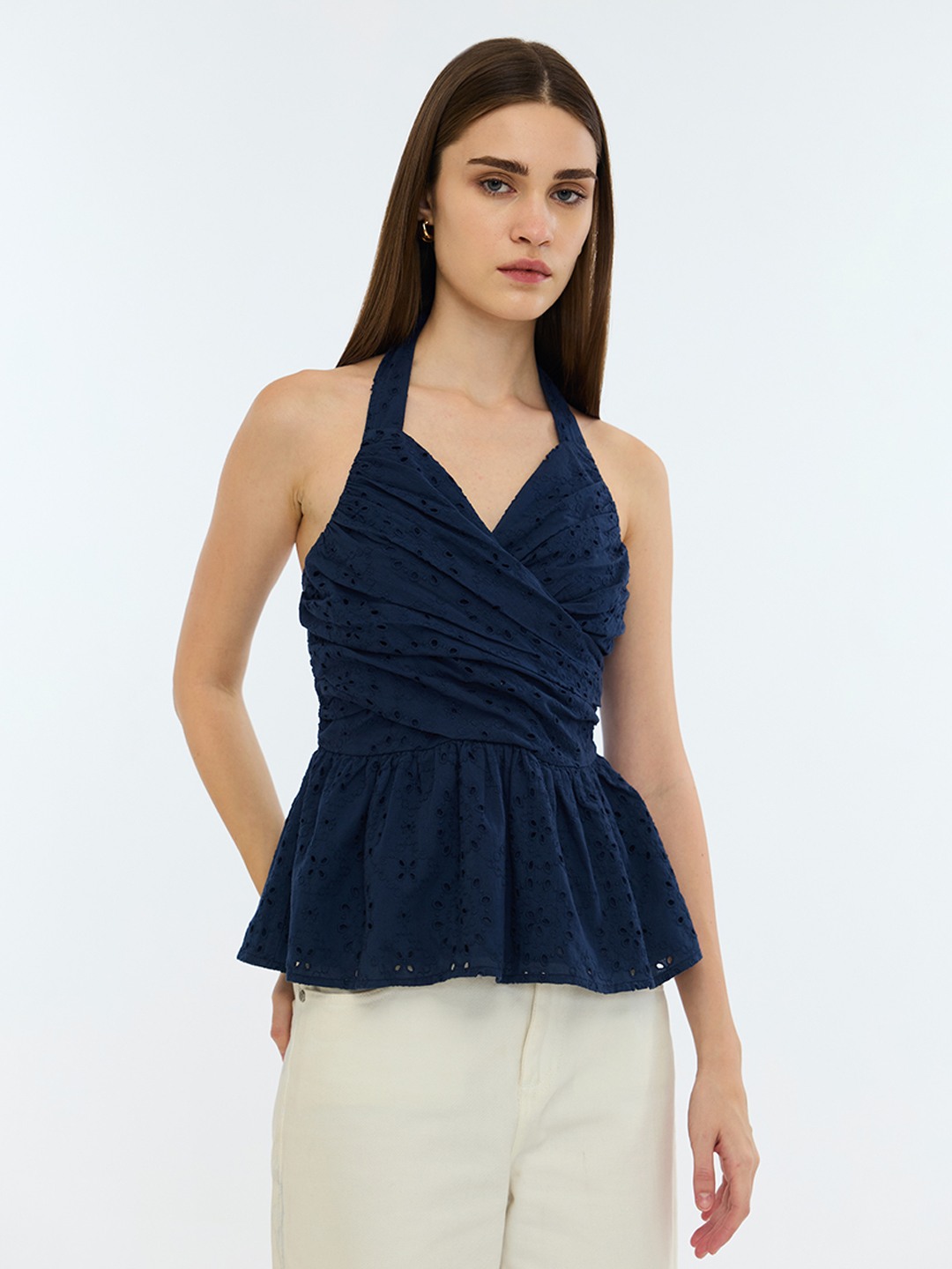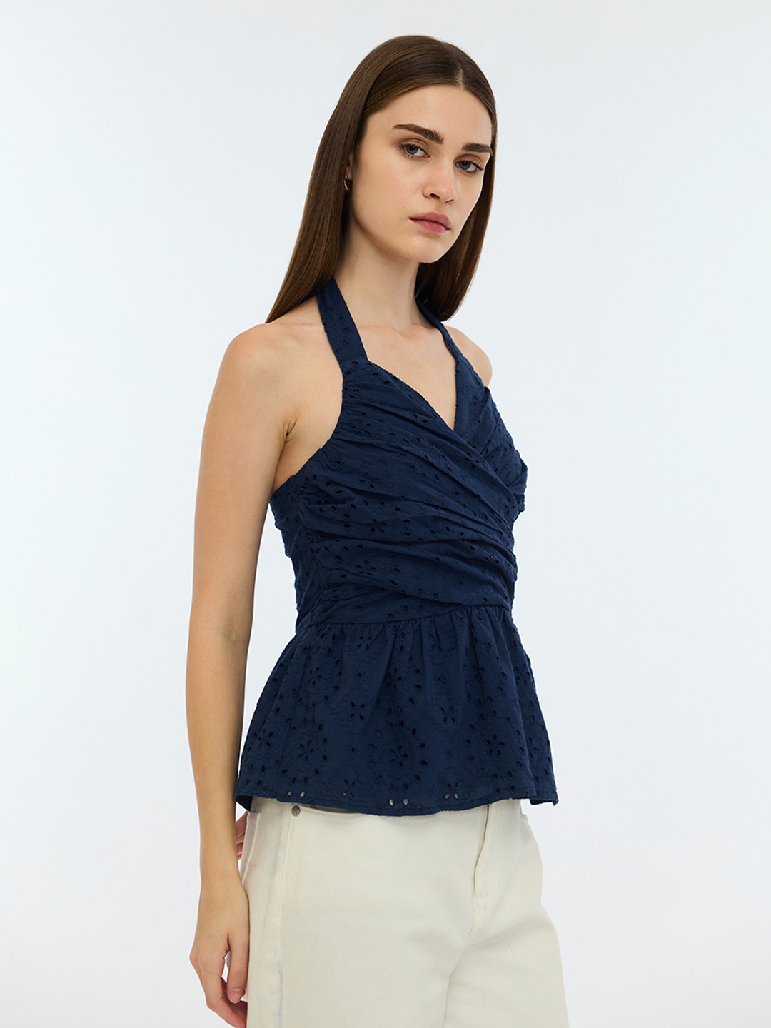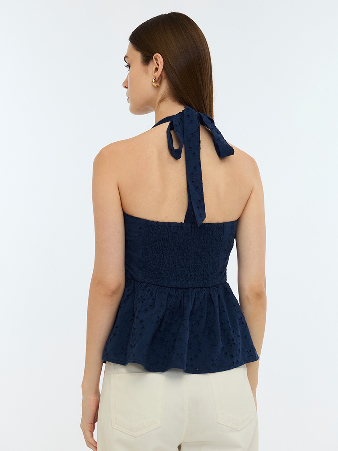 Blue Schiffli Halter Neck Top