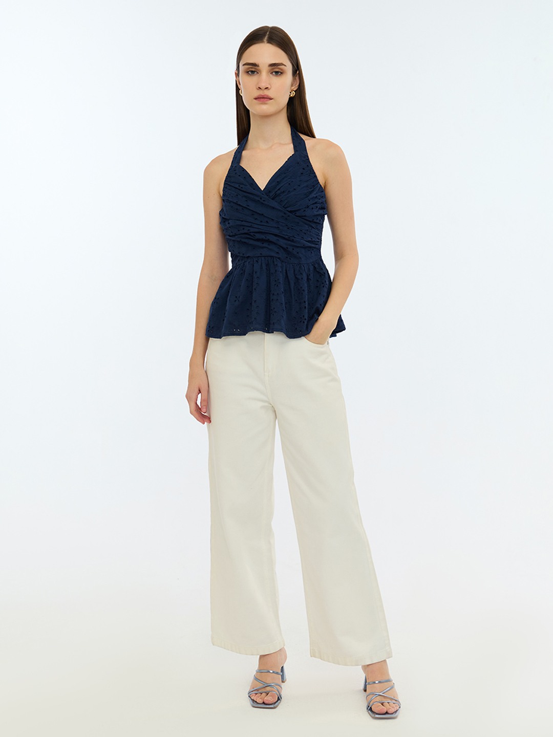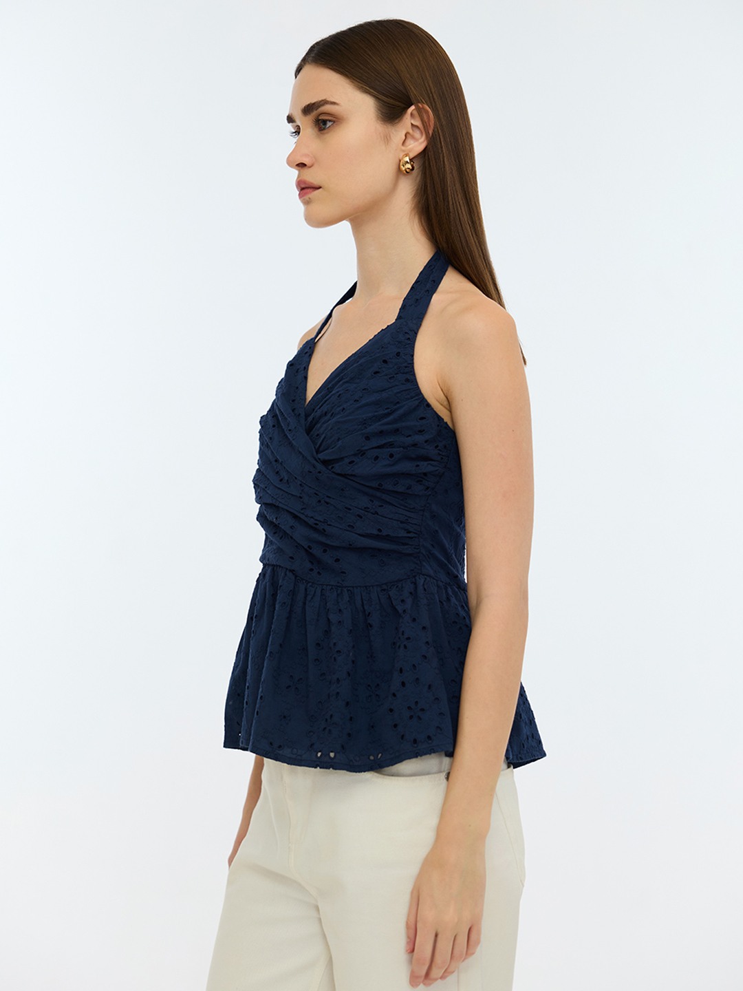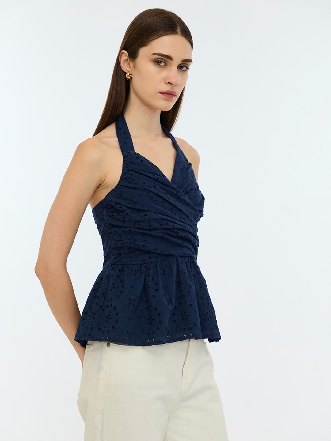 Blue Schiffli Halter Neck Top