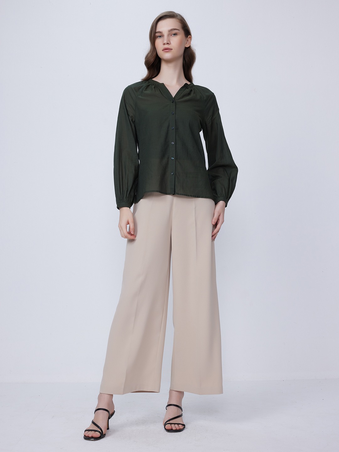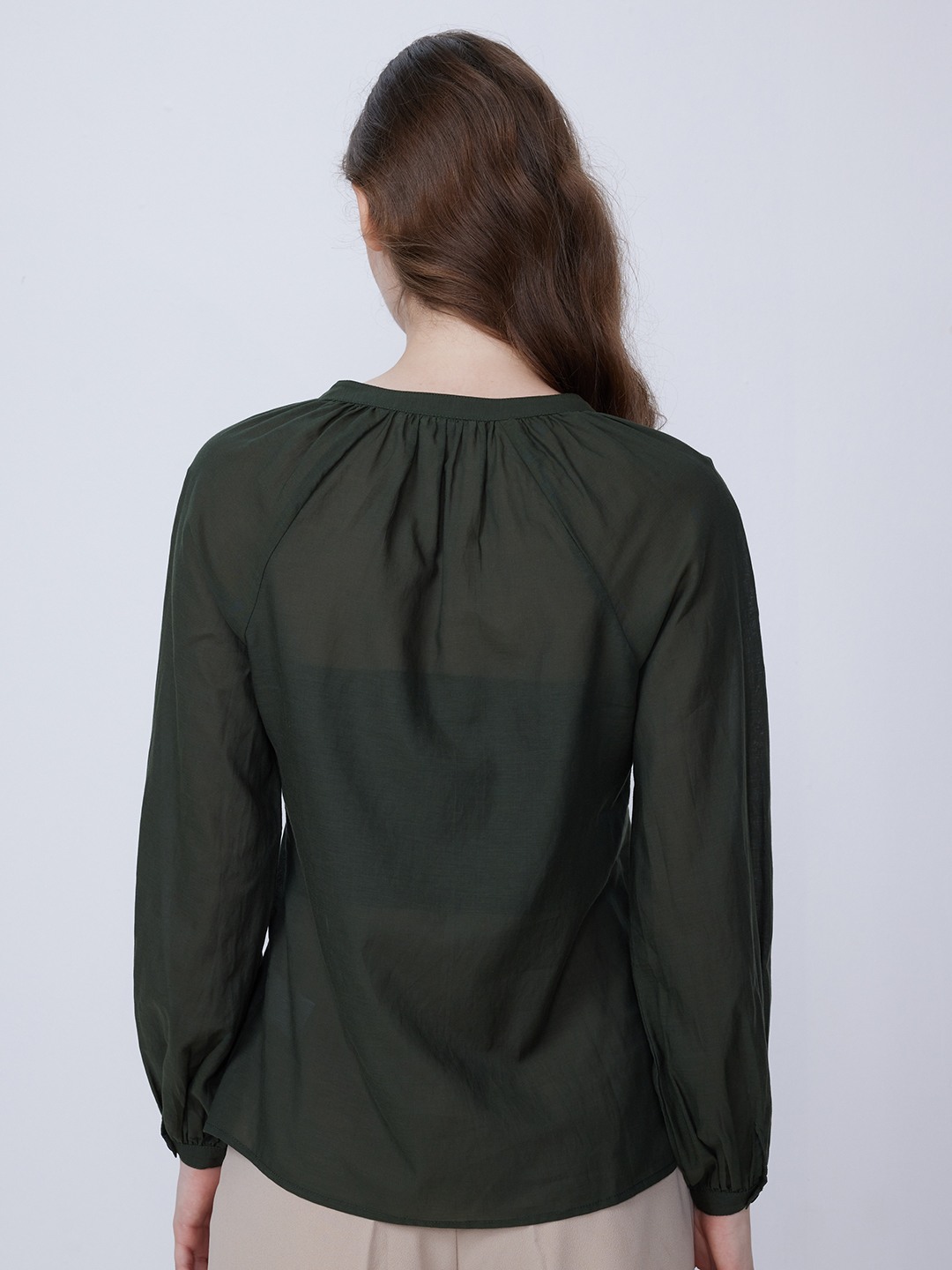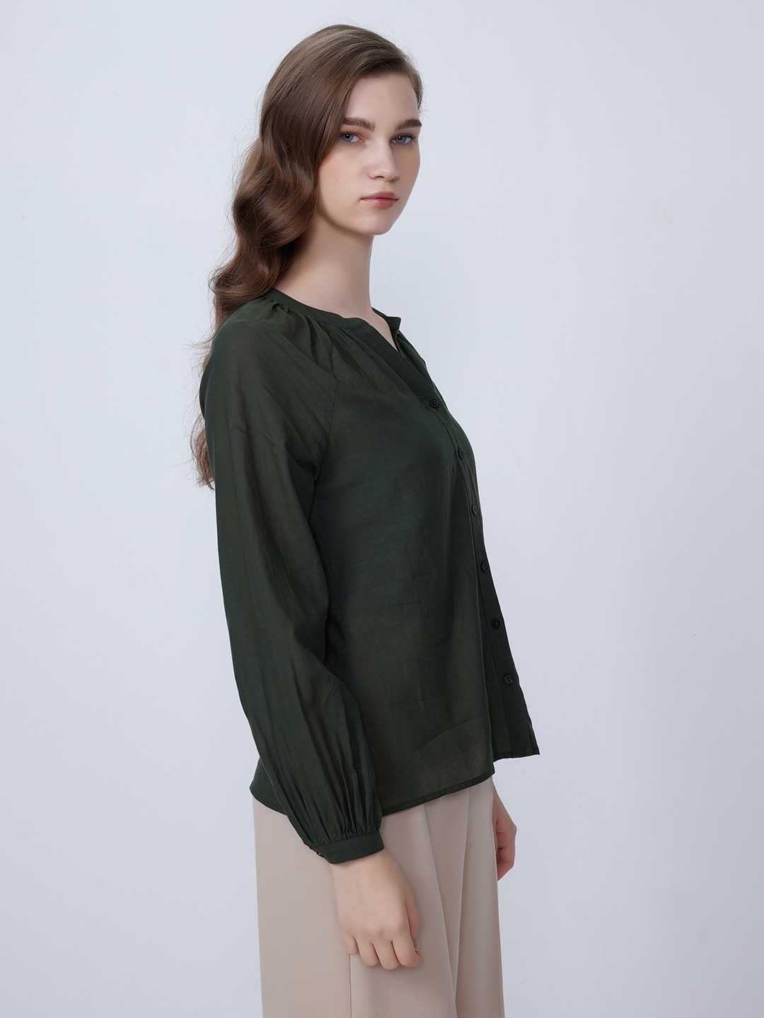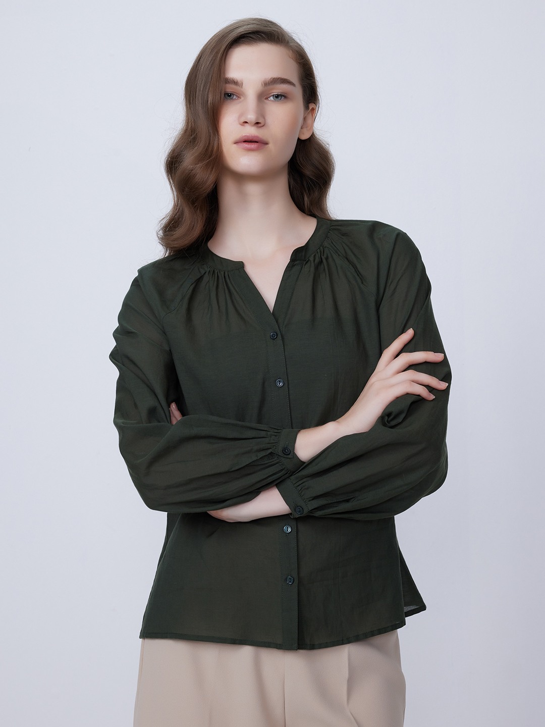 Olive Shirt With Elasticated Sleeves