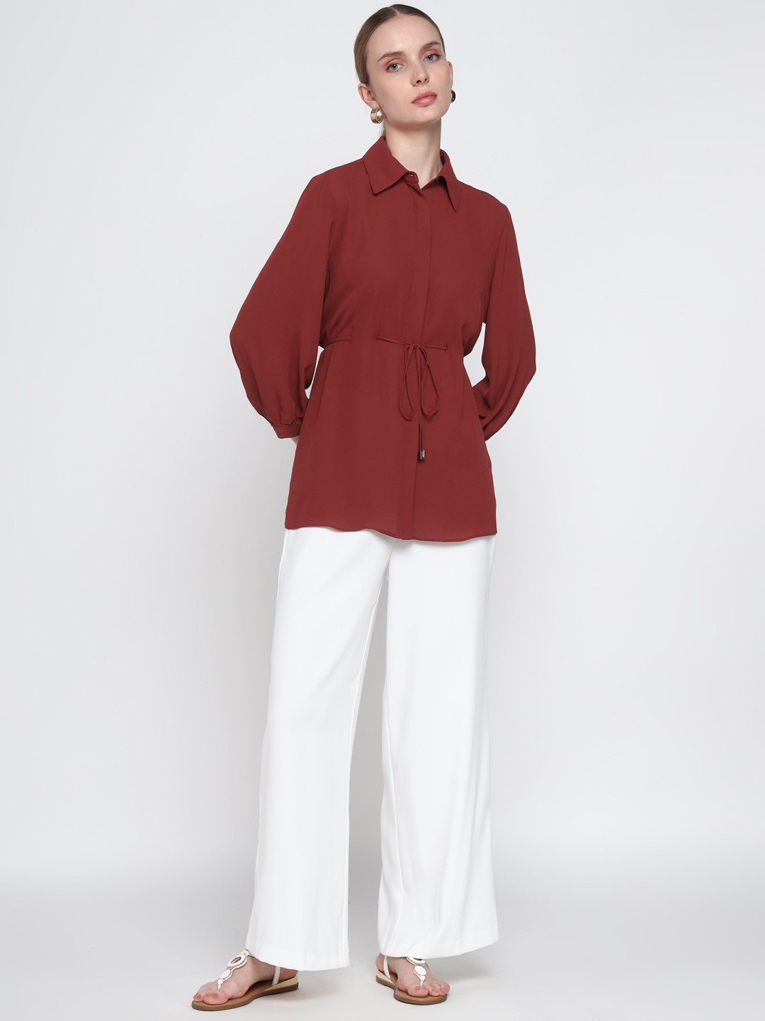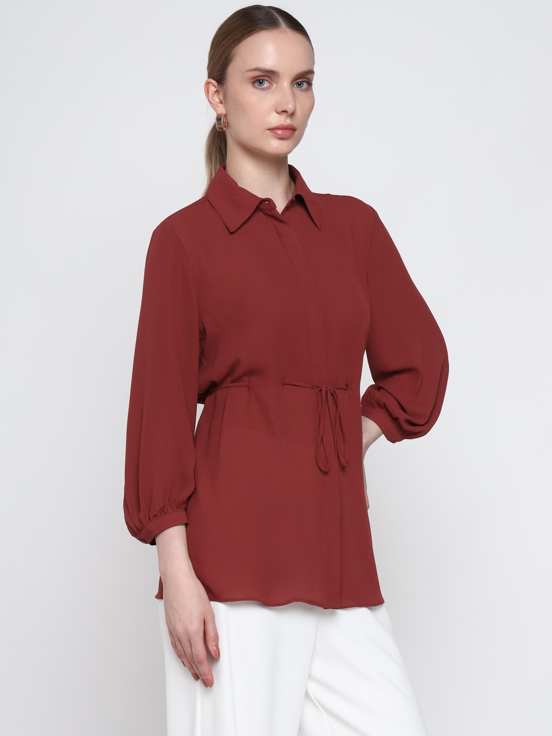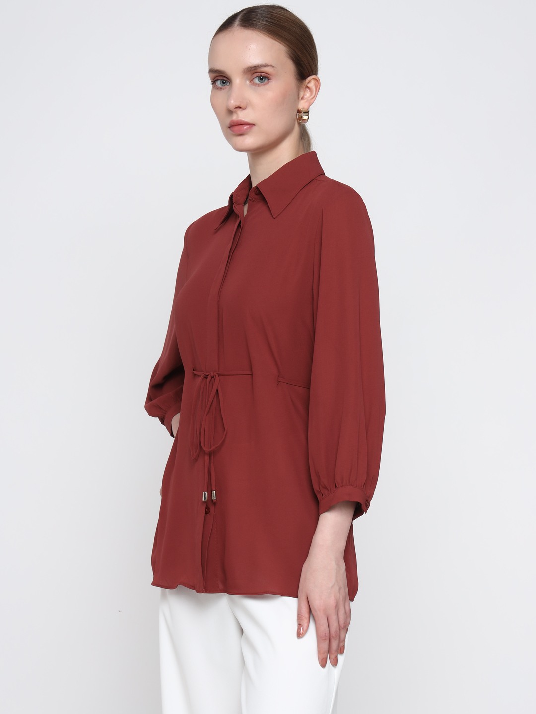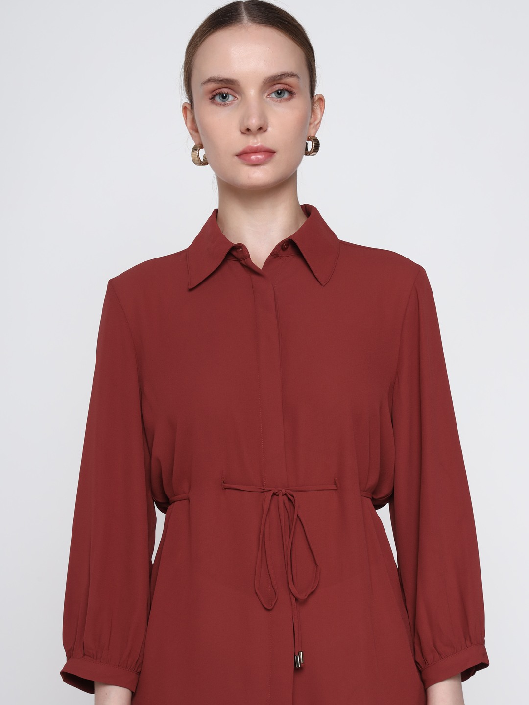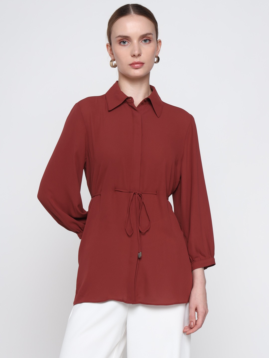Brown Tie Waist Shirt