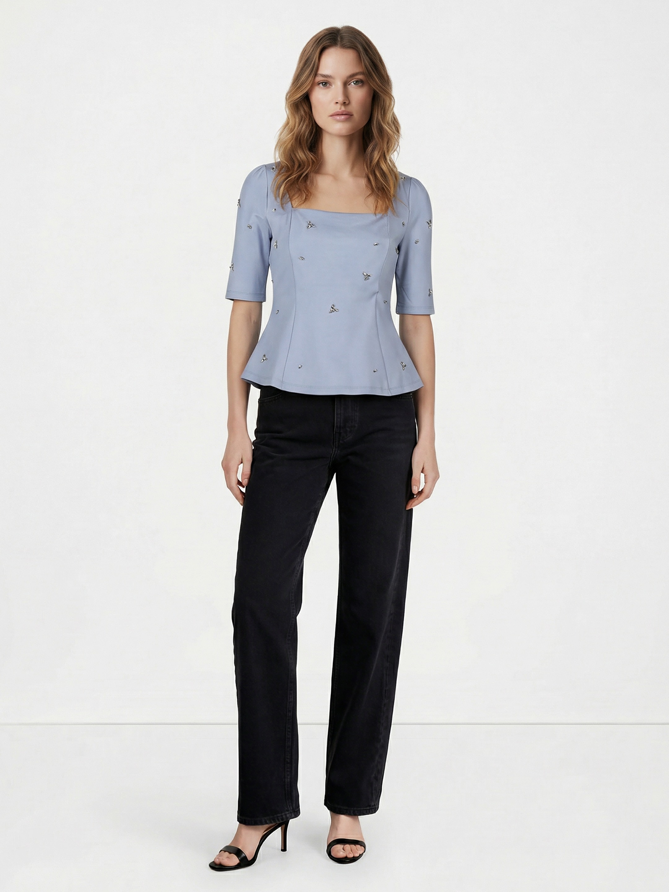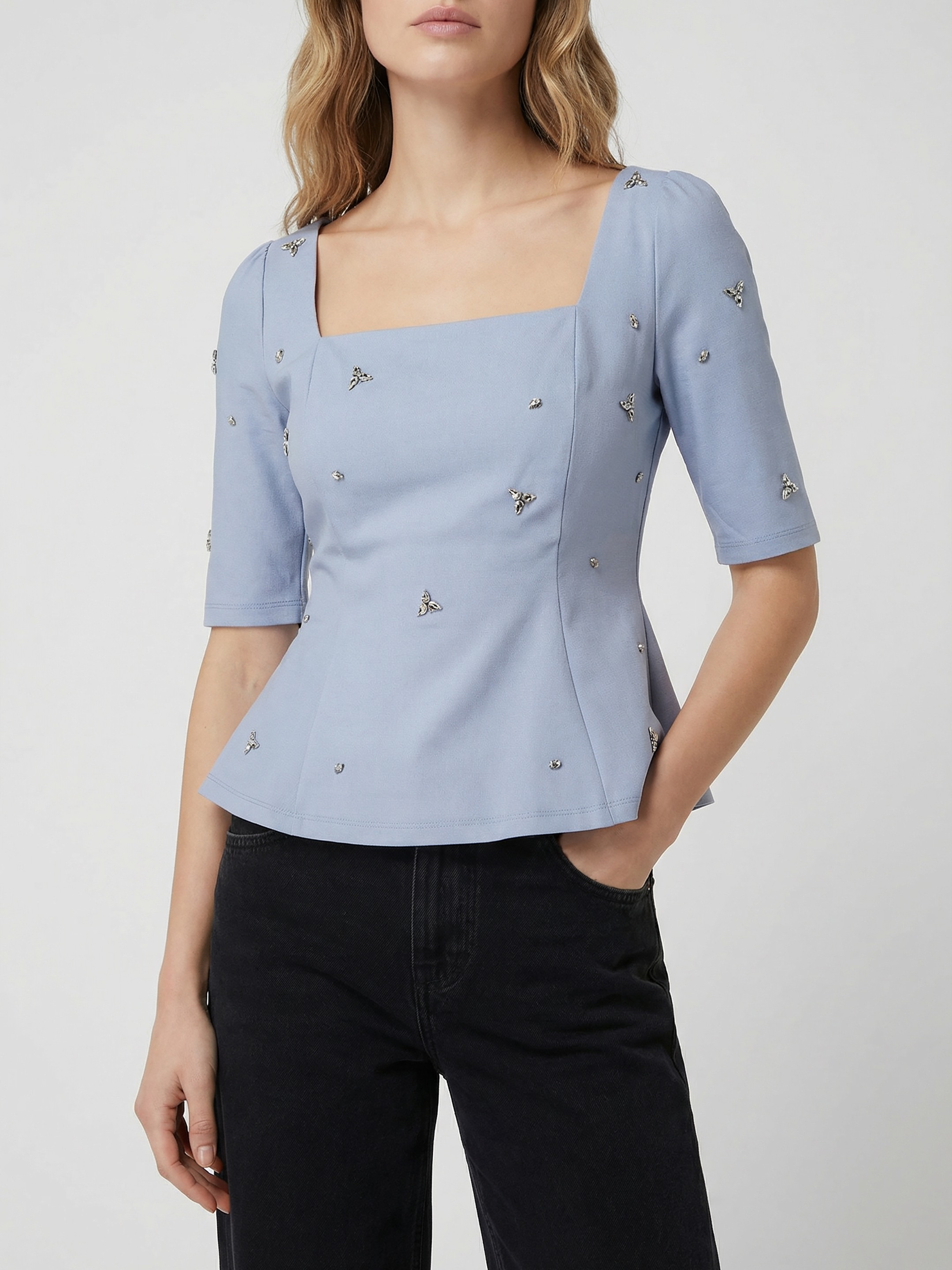 Soho Light Blue Peplum Top