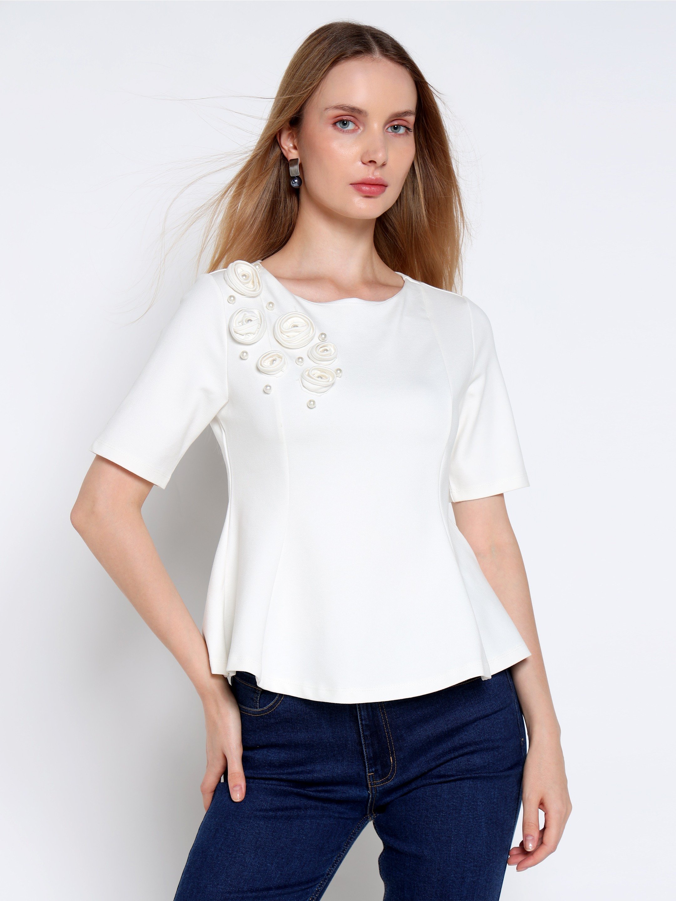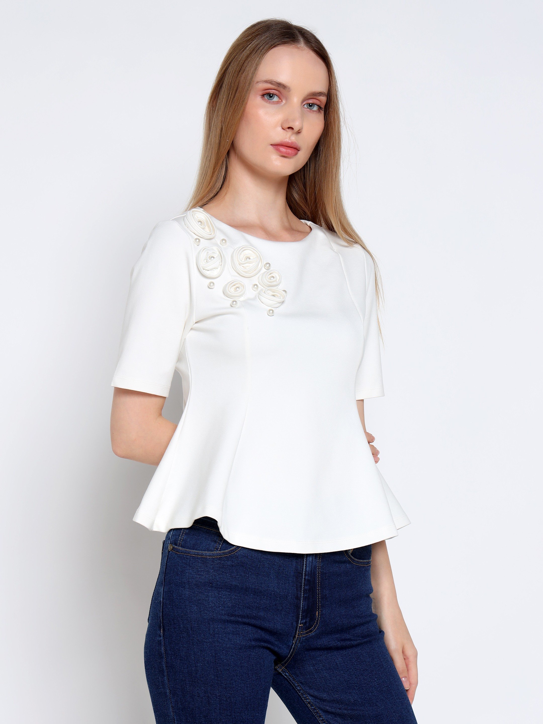 White Corsage Rose Top